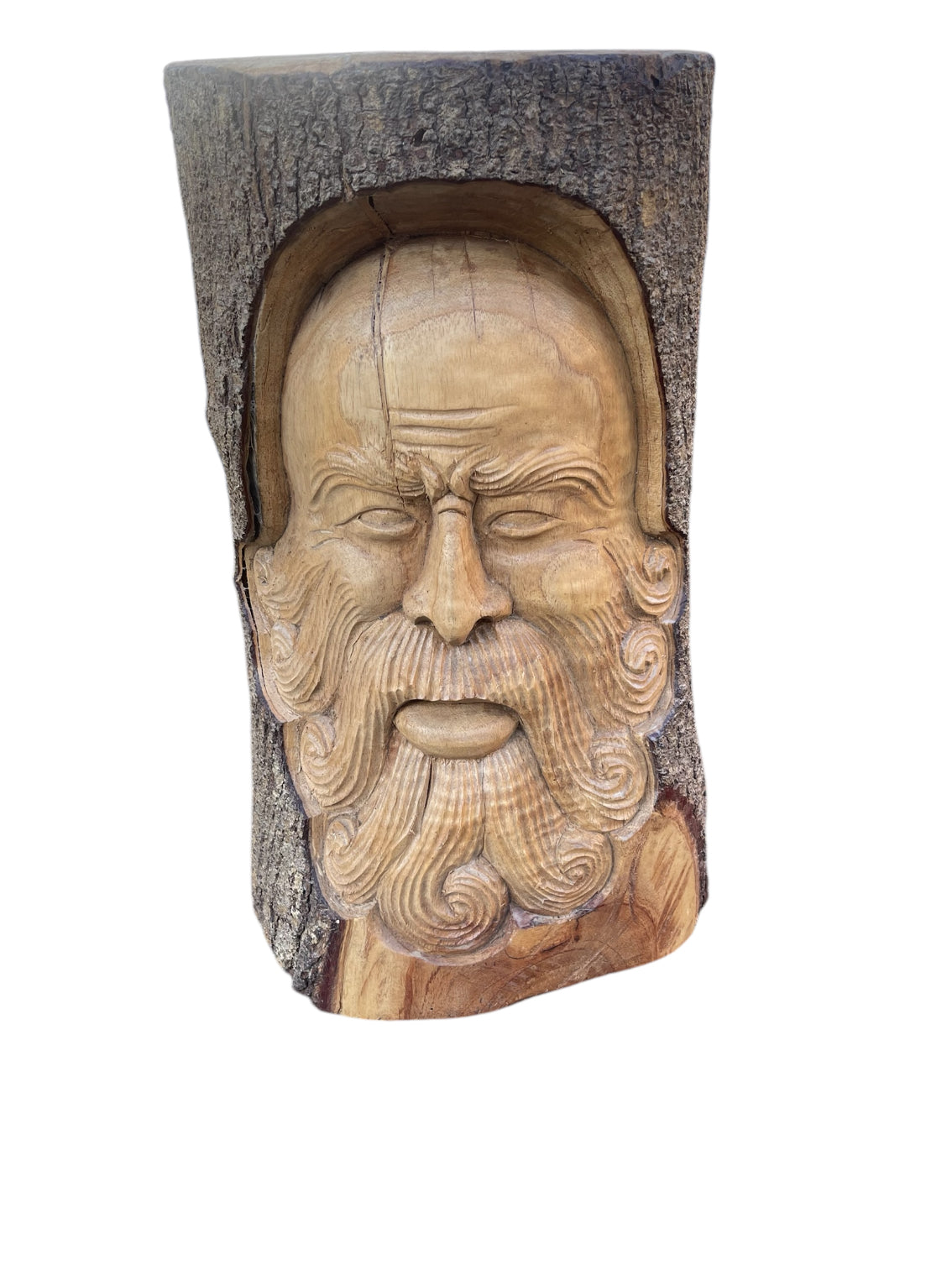 Hand Carved Santa Claus Face Wood...